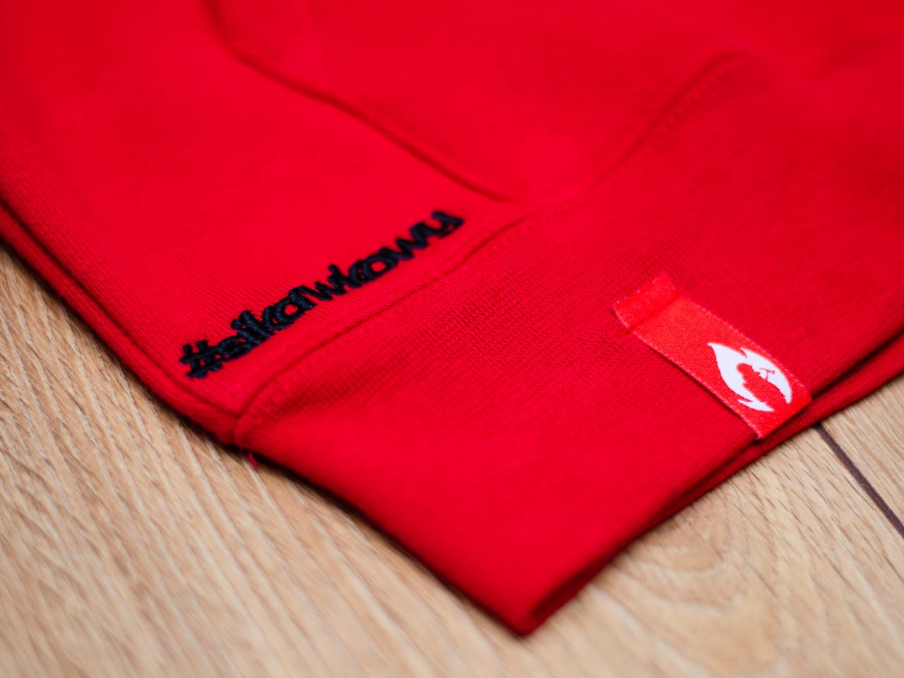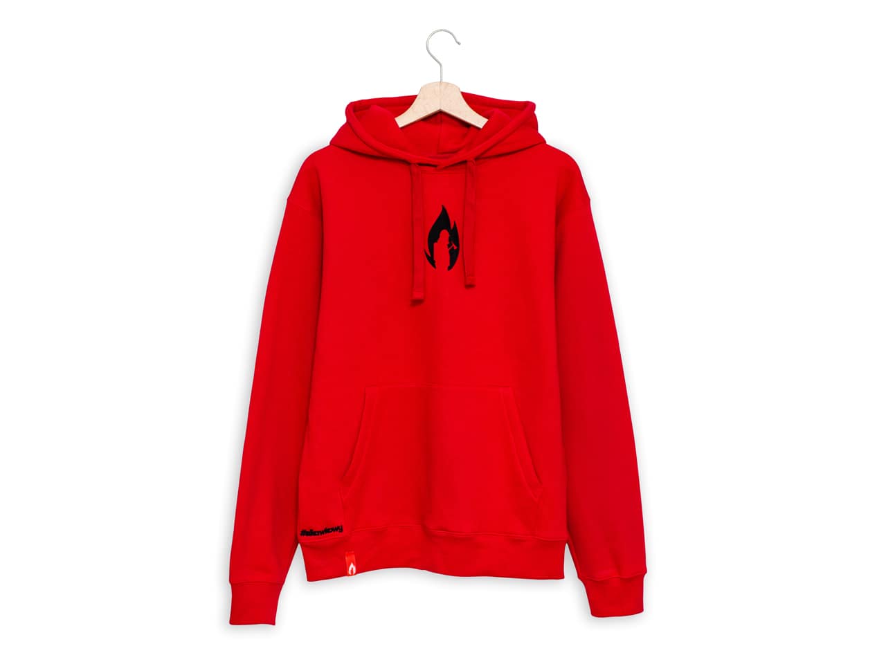 Bluza strażacka w soczystym, głębokim, czerwonym kolorze. Na środku bluzy wyhaftowane czarne logo Sikawkoy. Na dole bluzy wykonany również metodą haftu napis #sikawkowy.
