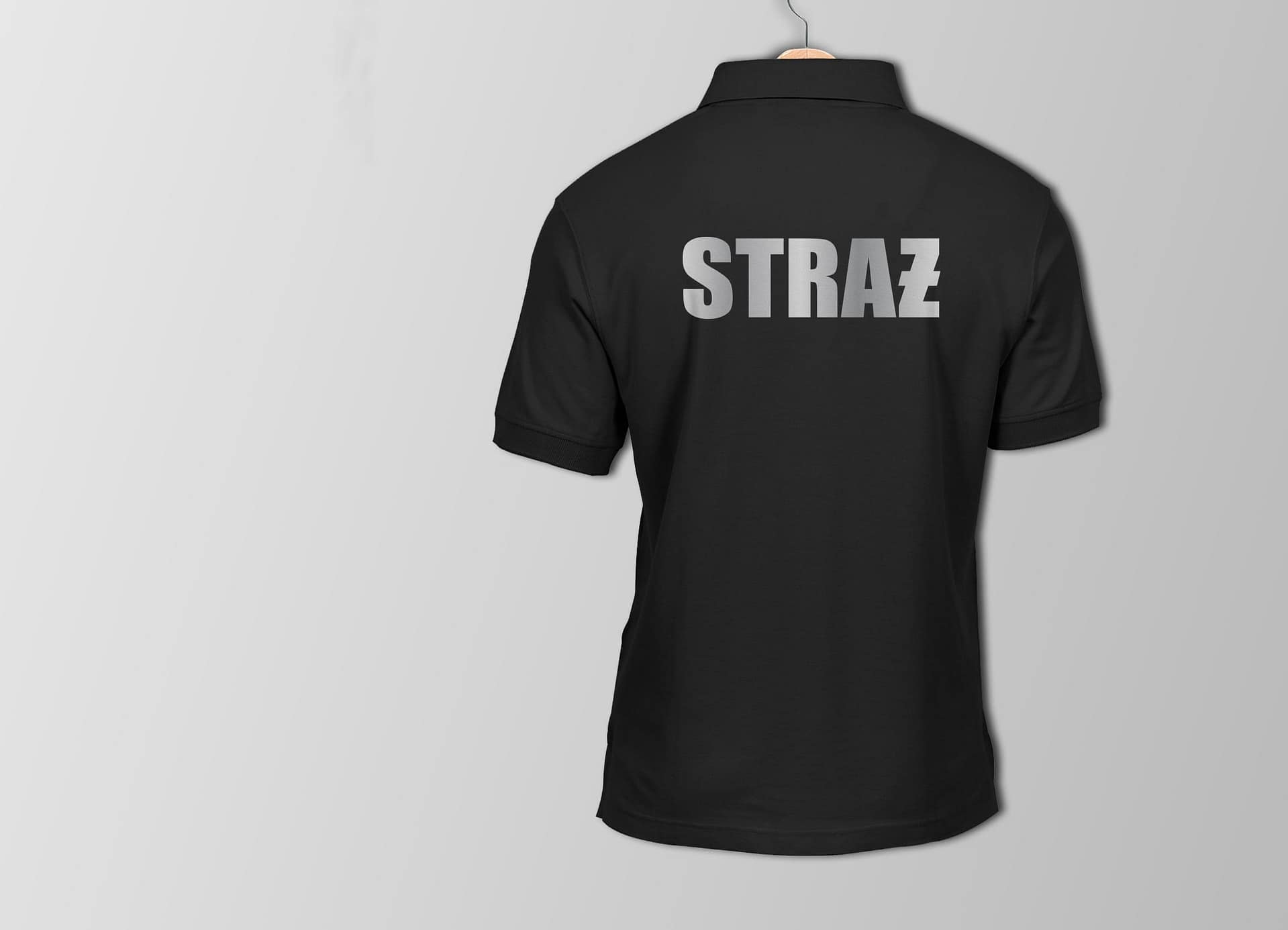 Nadruk znajduje się na plecach oraz lewej piersi.
