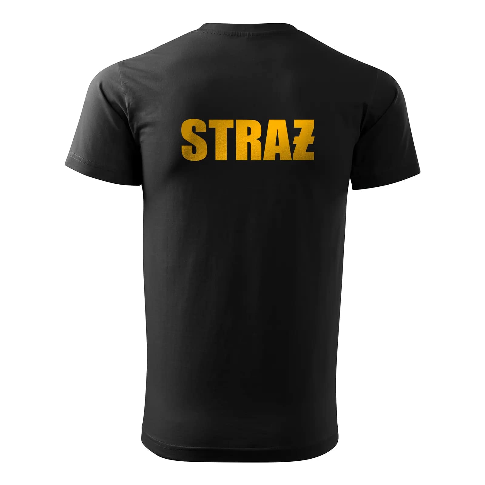 Napis STRAŻ na piersi ma wymiary około 80×25 mm