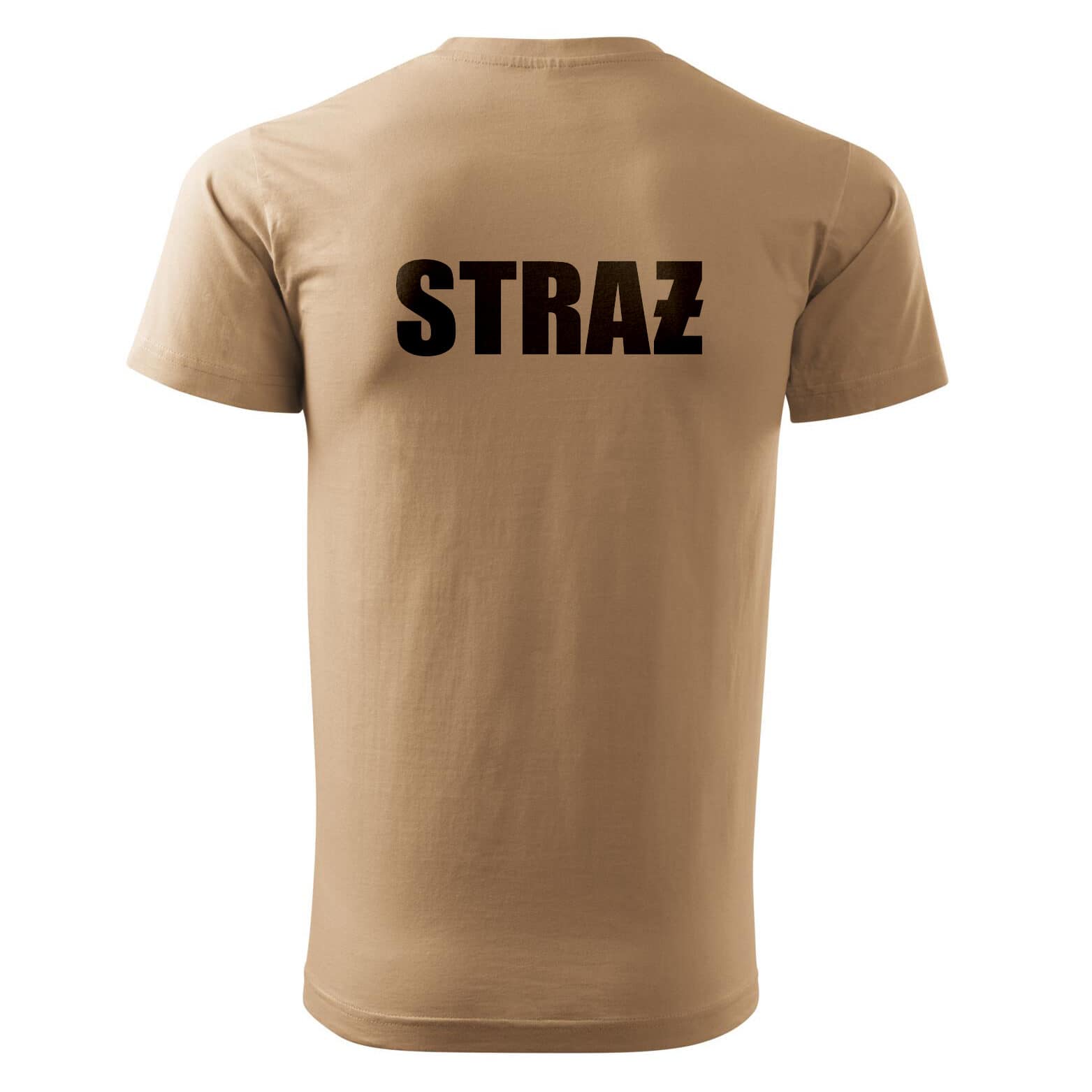Napis STRAŻ na piersi ma wymiary około 80×25 mm