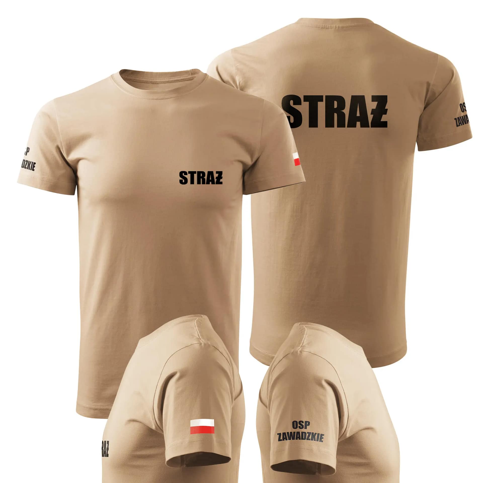 W naszym sklepie strażackim możesz dowolnie skonfigurować koszulkę strażacką piaskową według swoich potrzeb.Do wyboru mamy 2 kolory napisów: czarny oraz odblaskowy żółtozielony. Możesz dodać logo ZOSP RP lub PSP a przy większym nakładzie również własne logo jednostki. Ksywka, imię i nazwisko lub grupa krwi to również nie problem.