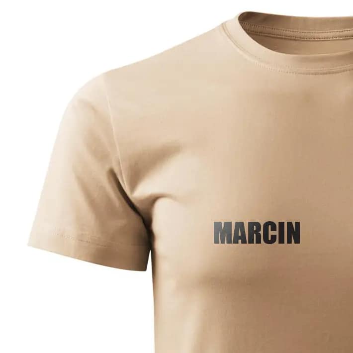 Napisy na koszulce wykonujemy metodą termo transferu folii flex na materiał. Nie jest to haft! Metoda, którą stosujemy, powoduje, że koszulka jest elastyczna a napisy nie są sztywne jak ma to miejsce w przypadku haftownaych napisów.