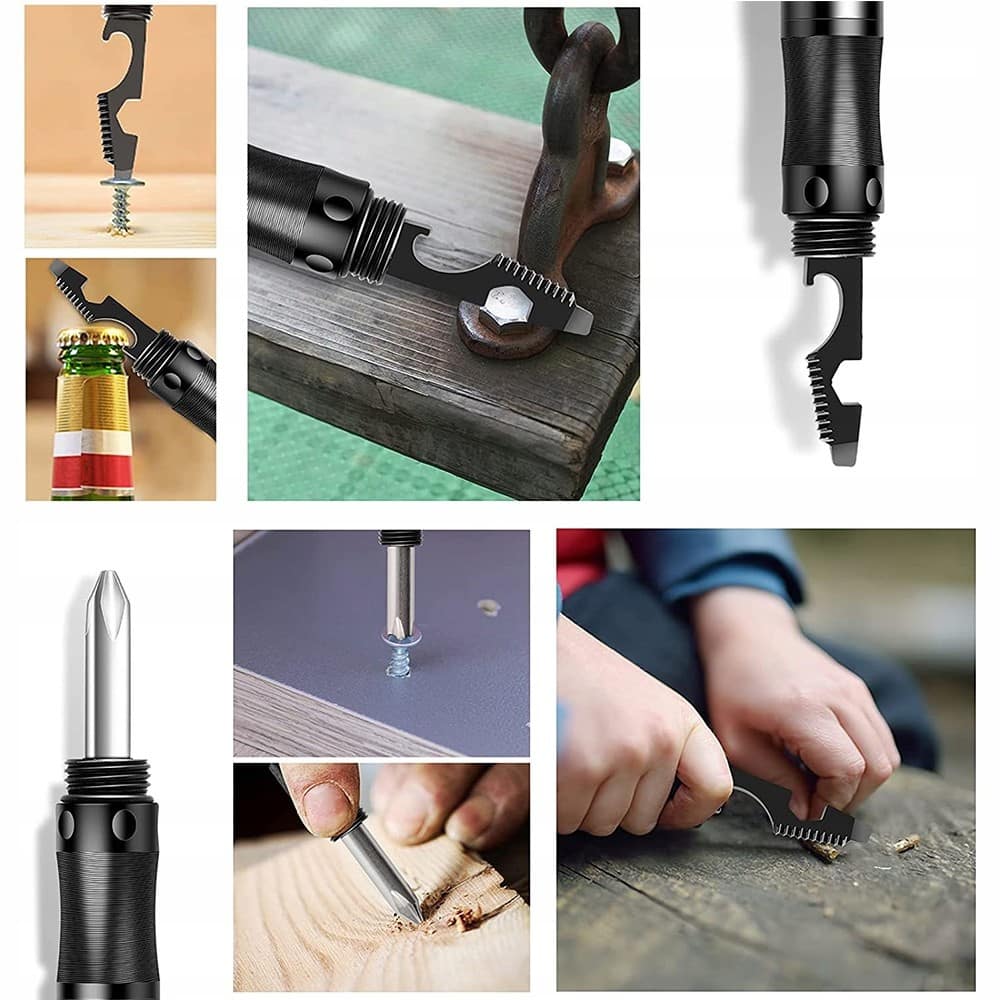 Długopis KB-007 kryje w sobie narzędzia, które mogą okazać się nieocenione w terenie, na biwaku czy w awaryjnych sytuacjach: