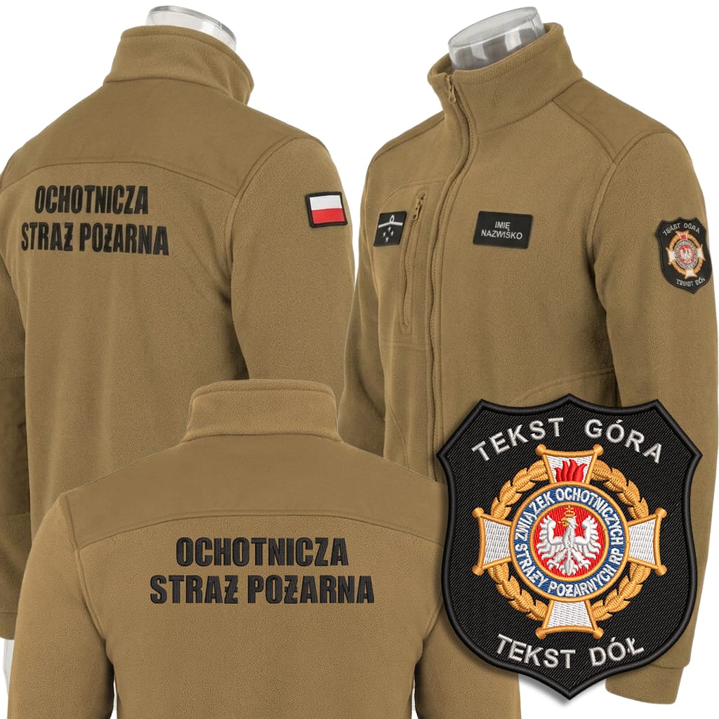 - Napis: haftowany, czarny „OCHOTNICZA STRAŻ POŻARNA” (duży na plecach)