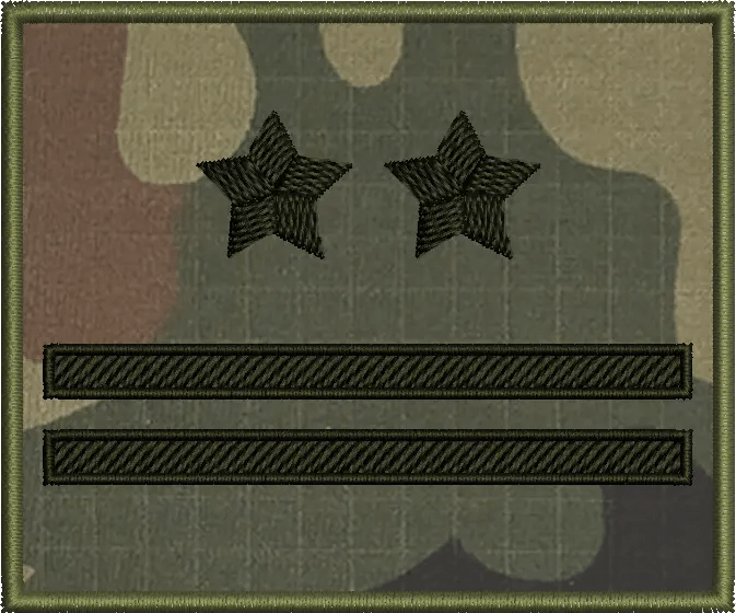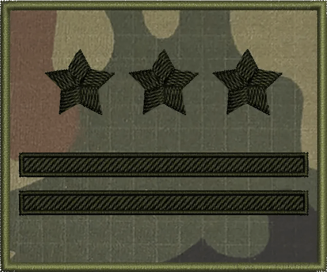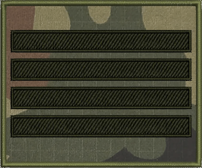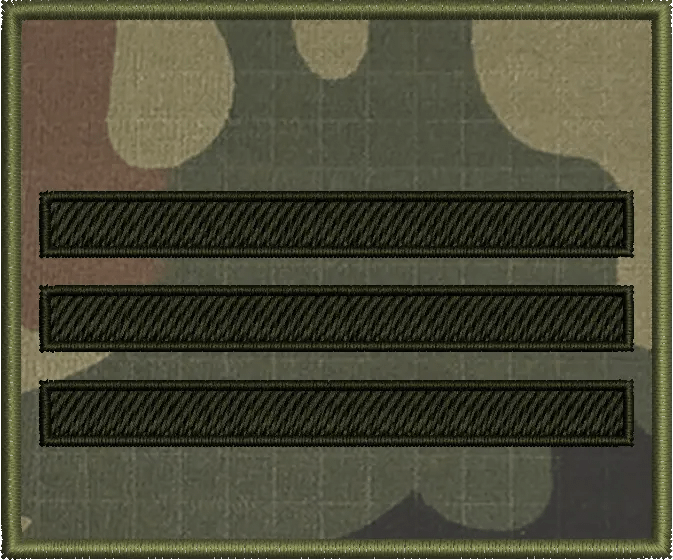 | Stopień | szeregowy, starszy szeregowy, starszy szeregowy specjalista, kapral, starszy kapral, plutonowy, sierżant, starszy sierżant, młodszy chorąży, chorąży, starszy chorąży, starszy chorąży sztabowy, podporucznik, porucznik, kapitan, major, podpułkownik, pułkownik |