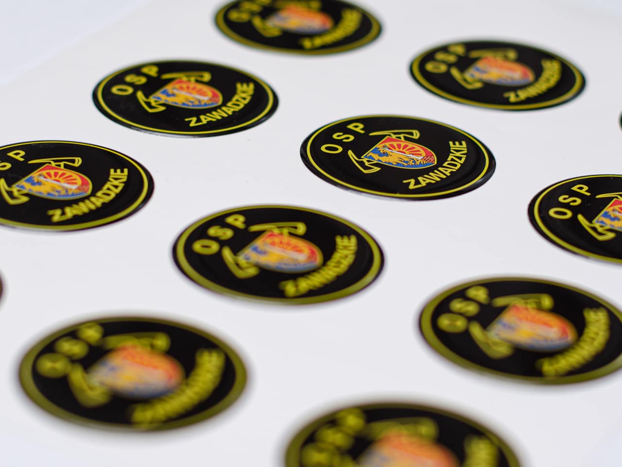 Nalepki wydrukowane są na folii a następnie zalane bezbarwną żywicą poliuretanową tworząc efekt przestrzenności.