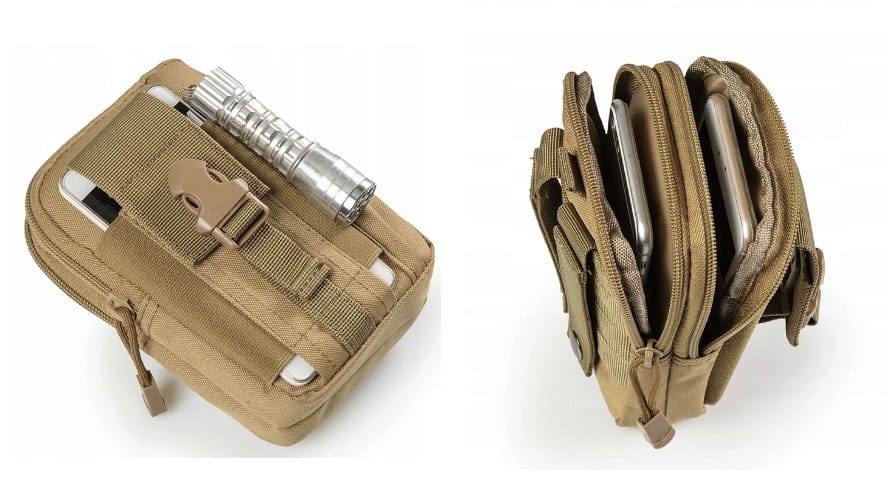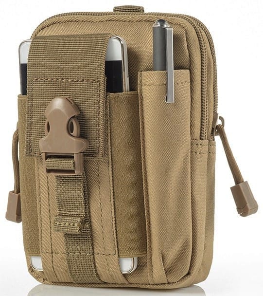 ➡️ Niezwykle użyteczna saszetka taktyczna w kolorze sand z miejscem na telefon komórkowy.