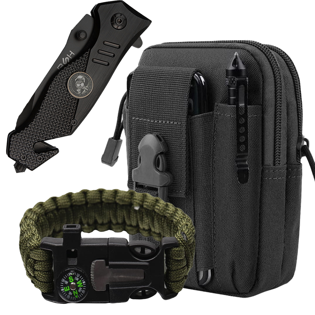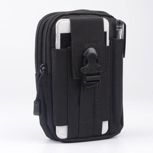 ➡️ Niezwykle użyteczna saszetka taktyczna w kolorze czarnym z miejscem na telefon komórkowy.